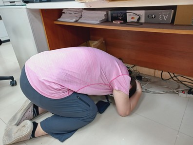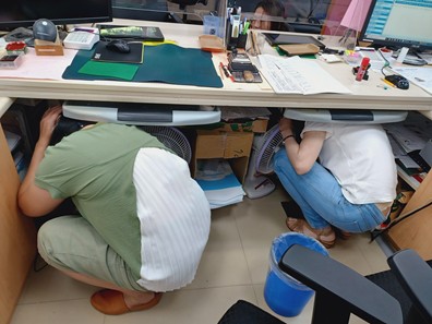本所於114年9月19日上午9時21分,「國家防災日地震警報」訊息發布,立即進行自主性就地避難演練,即採地震避難3步驟(趴下 Drop、掩護 Cover、穩住 Hold on),避難演練時間約1分鐘,持續推廣地震防災準備。